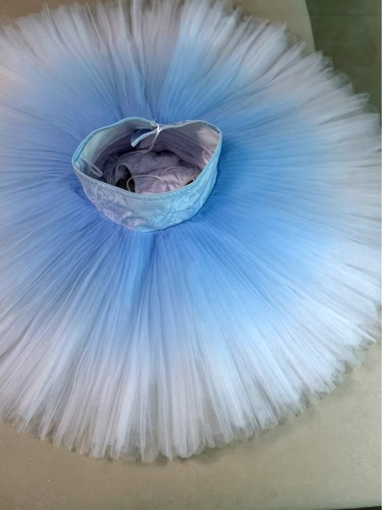Professional, ten layers rehearsal tutus featuring beautiful gradient tones. Hooks and eyes closure and stiff fabric waist belt.